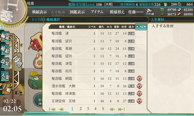 戦艦とは言いませんが、軽空母や重巡でも出てくれれば、改修や資材補充もできたのですが。