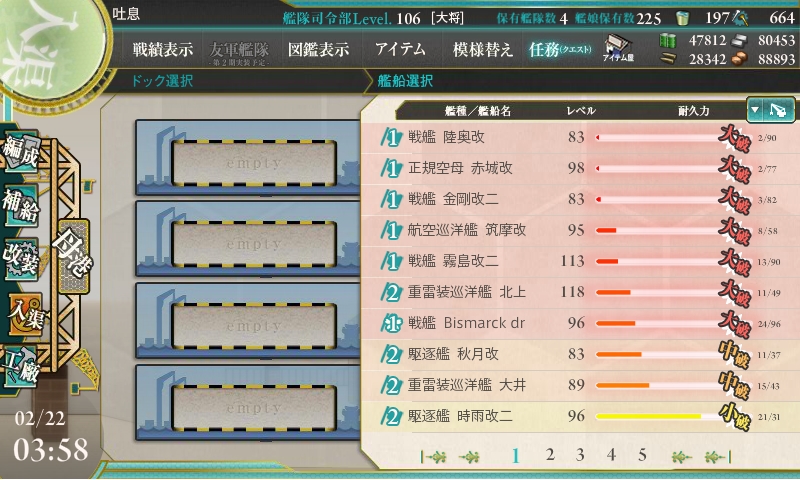 まぁ、そんなわけで今回はE-5ボス前撤退周回です。
