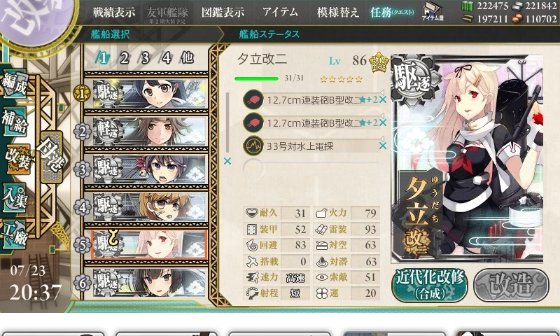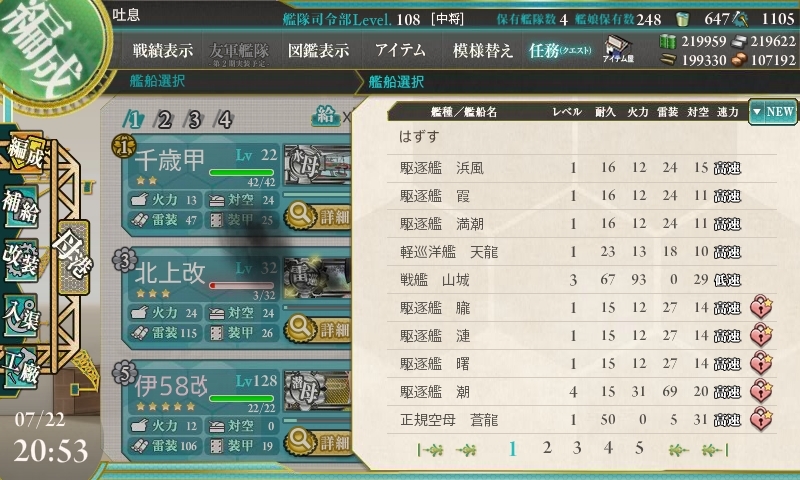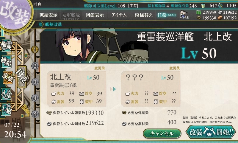 さらに新しい北上が50を超え、着々と装備も拡充されていっております。