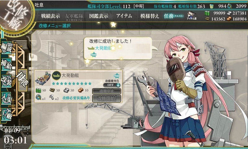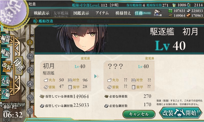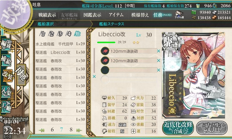正直、駆逐艦の練度上げはさほど緊張感がないのですよね。